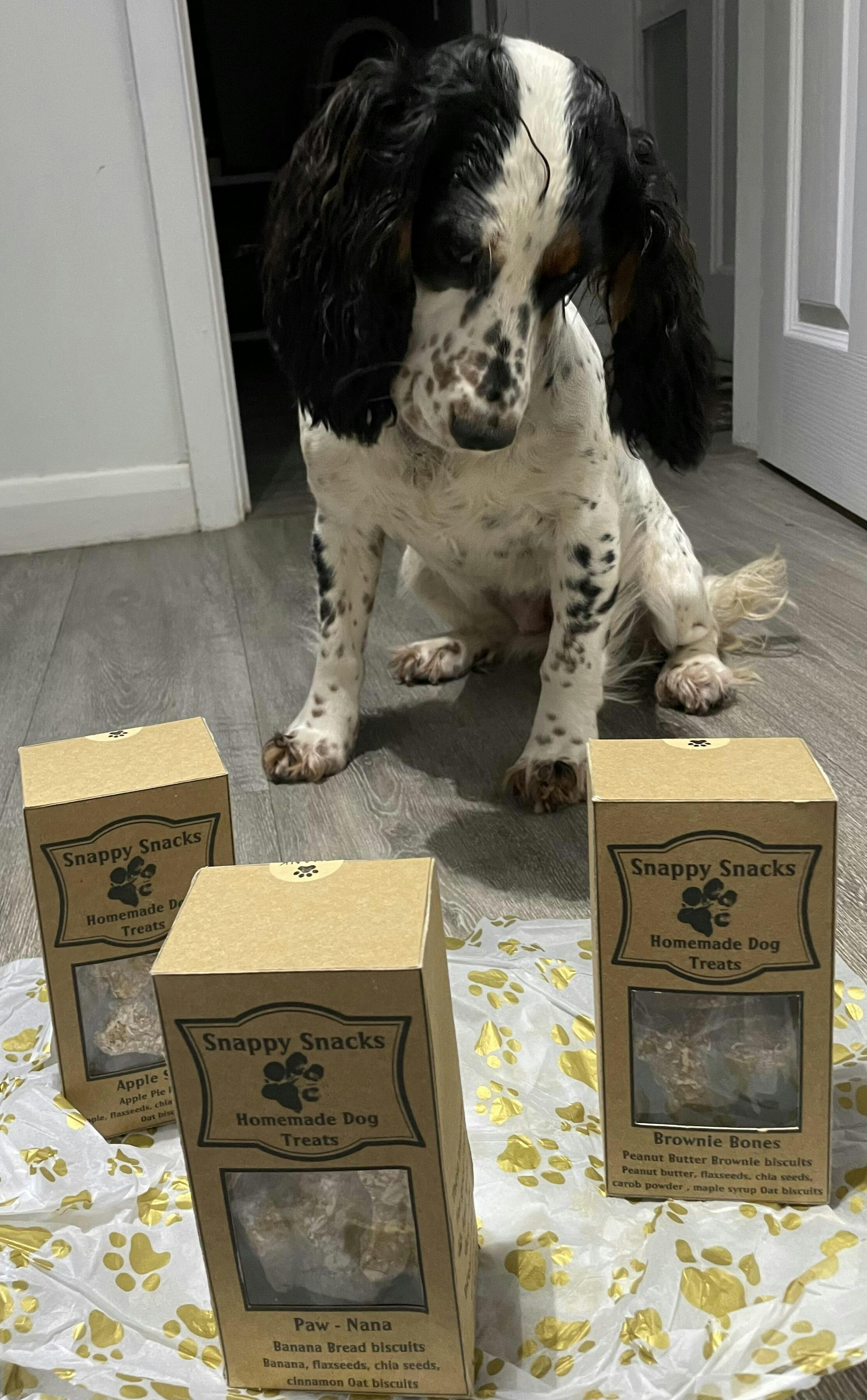 At Snappy Snacks, we believe dogs deserve treats that taste amazing and are made properly. Our Brownie Bones are peanut butter brownies for dogs, baked with care using natural ingredients and our own Nutty by Nature peanut butter β no artificial preservatives, no unnecessary fillers.